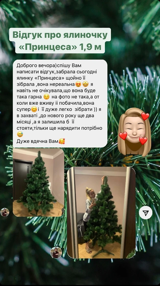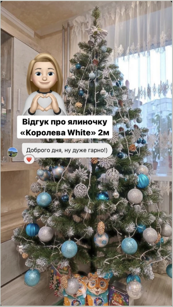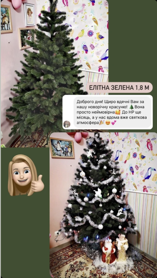 •Завдяки зеленим гілочкам з легким сизим відтінком вона виглядає максимально наближеною до живої ялинки.