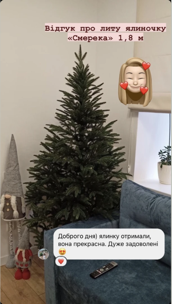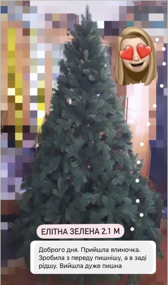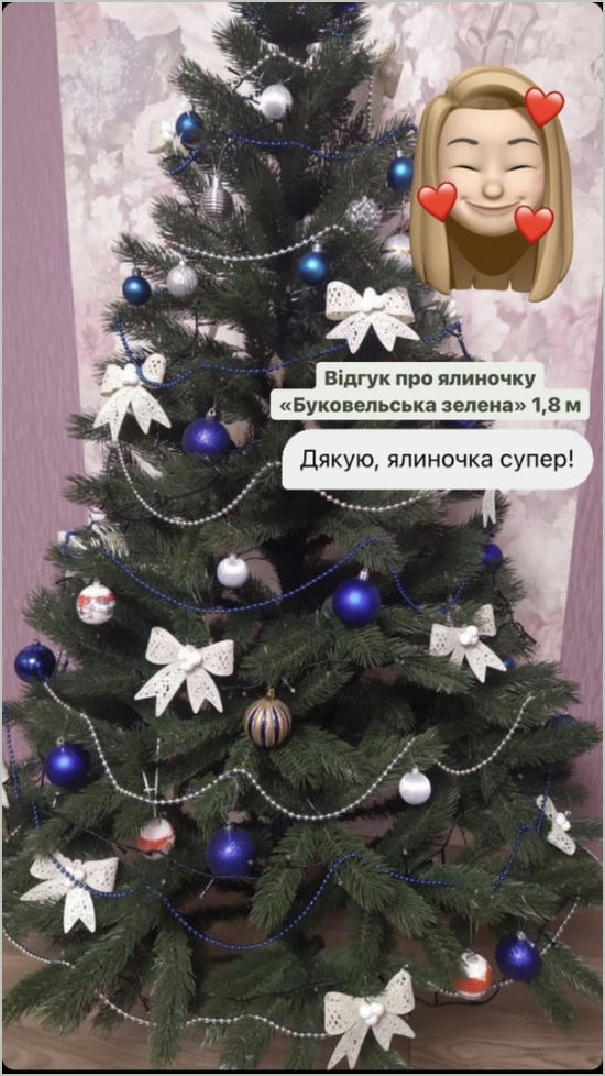 •Завдяки зеленим гілочкам з легким сизим відтінком вона виглядає максимально наближеною до живої ялинки.